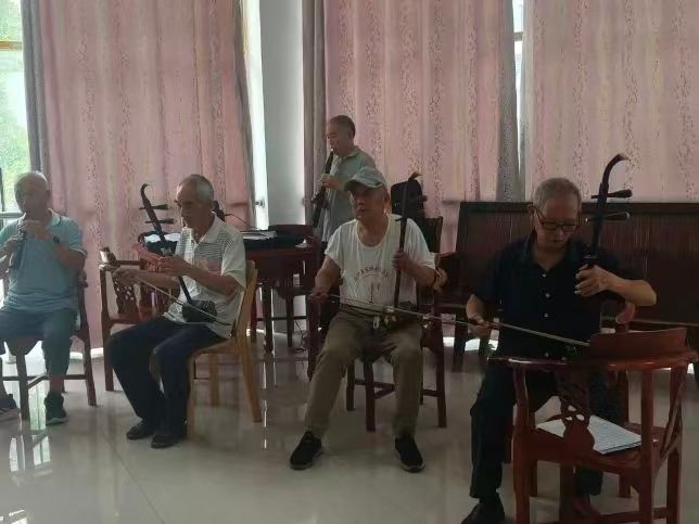 带着党课的触动,服务队走进镇老年大学。老人们以自创歌曲热情相迎——歌词绘茶园新貌、诉家乡变迁,质朴旋律浸染乡土深情。随后,老人们亮出“绝活”:将《南泥湾》《浏阳河》等9首红歌首句创新串联,形成独特联唱。“咱们来个‘老中青联合歌唱会’!”在邀约声中,三代人携手而立,齐声开嗓。